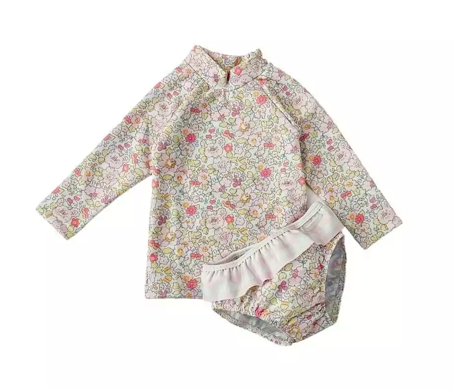 Conjunto dos piezas para nenas de 1 a 6 años. Estampa Menorca flores gama de rosa .