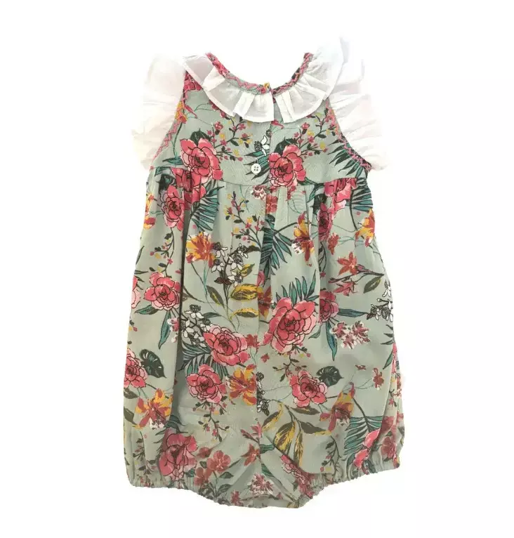 Bombachudo confeccionado en la misma tela estampada floral en tonos rosas y verdes. Cómodo y fresco, con elástico en cintura y piernas. Ideal para los dias mas calurosos.