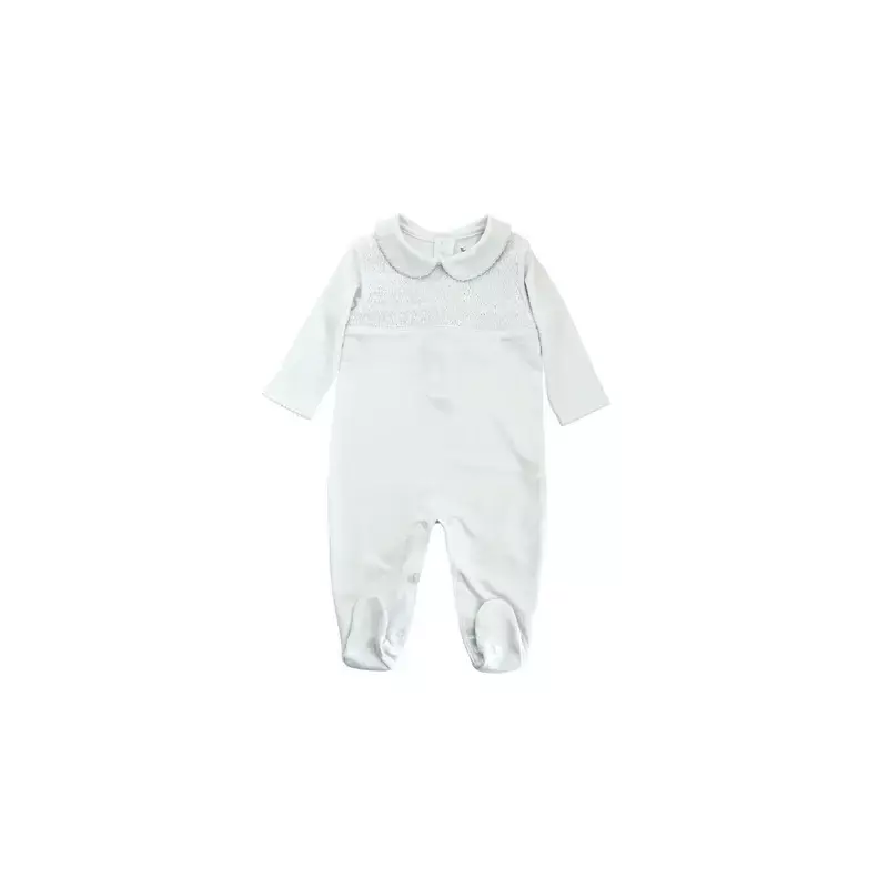 Confeccionado con algodón pima, reconocido por su suavidad excepcional y durabilidad. Su delicado bordado hecho a mano aporta un toque artesanal único, ideal para ocasiones especiales o para regalar. Cuenta con cuello bebé, mangas largas y broches en la parte inferior para facilitar el cambio. Una prenda cómoda, elegante y perfecta para la piel sensible del bebé.